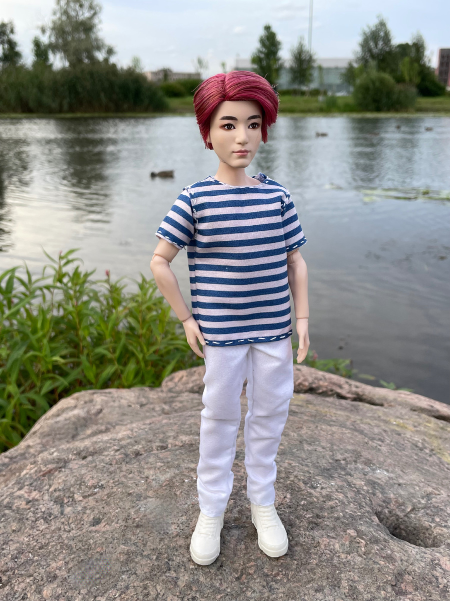 Наш любимый челлендж продолжается, более подробно о стиле можно узнать тут: Очень люблю этот стиль, пока готовила наряды куколкам, поняла, что и с вещами моего гардероба можно составить образы) Вот какие наряды подготовили ребята: На Чонгуке футболка-тельняшка (которую я сама сшила) и белые брюки. Джин выбрал белоснежную рубашку и голубые брюки, украсив образ полосатым галстуком: Чимин надел голубую полосатую футболку с ярким акцентом в виде сердца и простые белые брюки: И традиционно общая фотография : Вот такие образы у нас получились ) Всем спасибо за внимание 💜💜💜