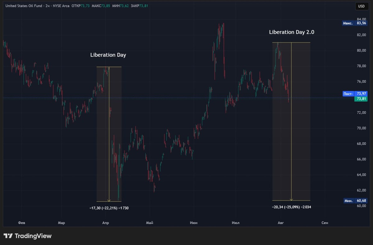 Нефть опять намекает? Или все забыли, когда тарифы вступают в силу