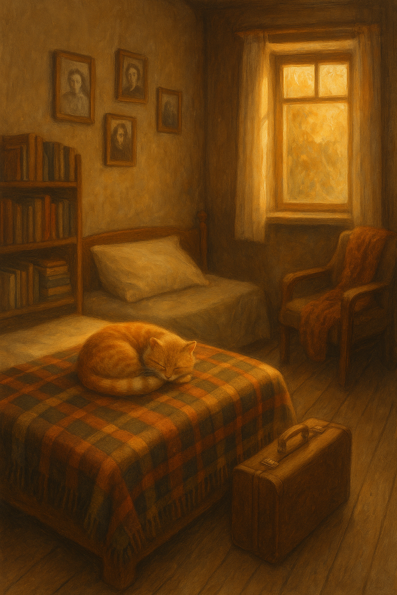Смеркалось. Солнце скрылось, и по саду расползлись вечерние тени. Ветер отсырел, потянуло свежестью и влажной прохладой. Кот давно ушёл со стола и спал в одном из кресел, в гнезде из подушек и пледа.