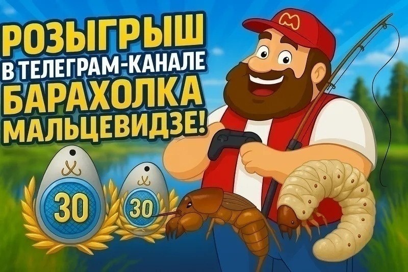 Розыгрыш в Телеграм-канале Барахолка Мальцевидзе Для участия нужно под постом с розыгрышем - https://t.me/pp4farmtrofMARKET/4622 нажать на кнопку "Участвую". Отправь ссылку на розыгрыш другу - за каждого приглашенного вы получите дополнительные билеты и повысите свой шанс на победу! Чем больше пригласите - тем больше билетов на розыгрыш вы получите!!! Призы: 1) Прем 30 дней (или 5 голды) + Катушка низкопрофильная Winner NG LP-HS (4,5кг) 2) Медведка = 100 шт. 3) Личинка жука - носорога = 100 шт. 4) Личинка майского жука = 100 шт. 5) Ящик водки Tungus + Шаманский Бубен = 1 шт. 6) Вино Kuban Blance = 10 порций 7) Коньяк Маршальский = 20 порций + Рыболовный стул 1 шт. 8) Вино Ruby Diamond = 10 порций 9) Коньяк Генеральский = 100 порций 10) Водка Золотой Империал = 10 порций Призы только для игроков RU региона. Итоги: 31 августа 2025г. 10 призовых мест. Спасибо за призы: F1nka_ (Сеня) Вурдалак (Александр) Никита Корчагин