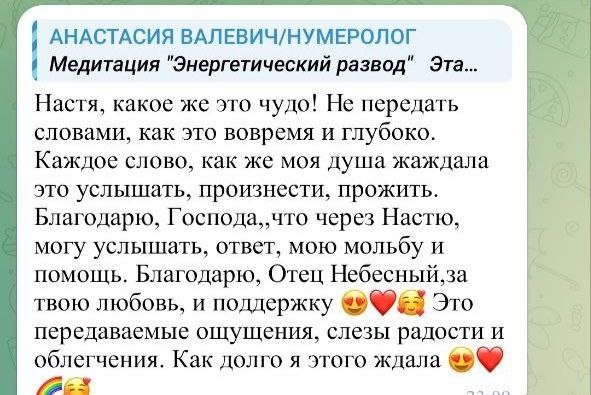 Завтра 08.08. в 17:17 и 20:00 по МСК будет групповая медитация Энергетический развод. Энергообмен - 333р *оплата из любой страны ❤️Для участия пиши:"+" @anastasia_valevich33