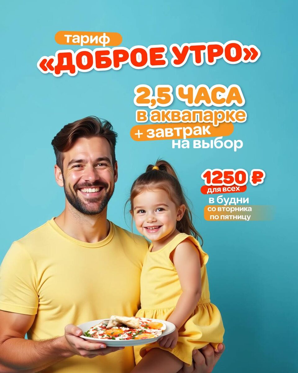 Раскрываем секрет идеального утра🤫Волшебная формула проста: аквапарк «Улёт» + тариф «Доброе утро»☀️ Используйте промокод «Доброе утро» и откройте доступ к 2,5 часам утреннего отдыха в аквапарке🏖 и вкуснейшему завтраку🍽, чтобы энергии точно хватило на все ваши планы😉 Выбирайте аппетитное блюдо из нашего утреннего меню и напиток к нему:😋 🍴сытная болтунья с ветчиной и сыром 🍴свежий круассан с яйцом пашот, беконом и грибами 🍴оригинальная глазунья с помидором, перцем и фермерским сыром + ☕️ароматный кофе, бодрящий чай или освежающий морс Добавьте в своё утро адреналин, веселье и яркие вкусы!🤩 💳Стоимость билета на тариф - 1250₽ для всех категорий возрастов 🔍тариф можно приобрести на кассе аквапарка в будни со вторника по пятницу с 10:00 до 11:00 🔍не суммируется с сертификатами, с другими акциями и специальными предложениями, а также с бонусной программой #аквапарк #аквапаркульяновск #аквапаркулёт #кудасходитьульяновск #кудасходитьвульяновске #завтраквулёте #завтракваквап