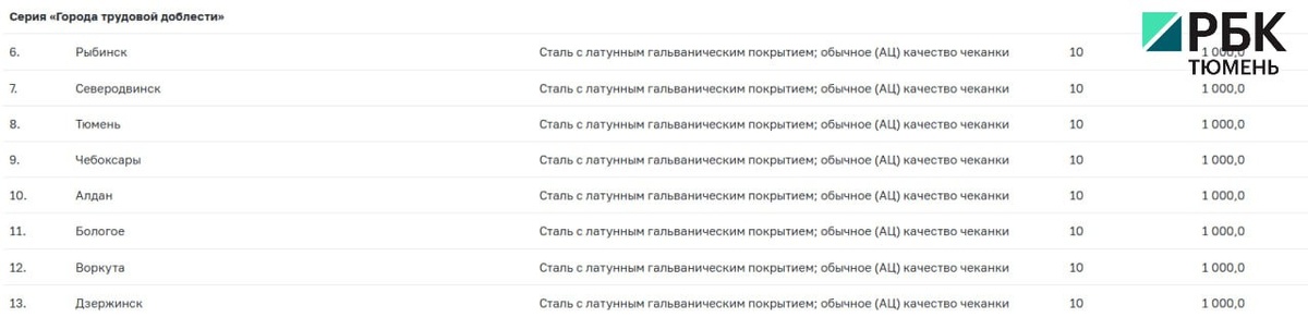Банк России выпустит монету, посвященную Тюмени. Она войдет в серию «Города трудовой доблести». Это будет памятная монета из стали с латунным гальваническим покрытием номиналом 10 рублей. Тираж монеты – 1 млн штук. Выпуск планируется в 2027 году. Подписаться | Забустить
