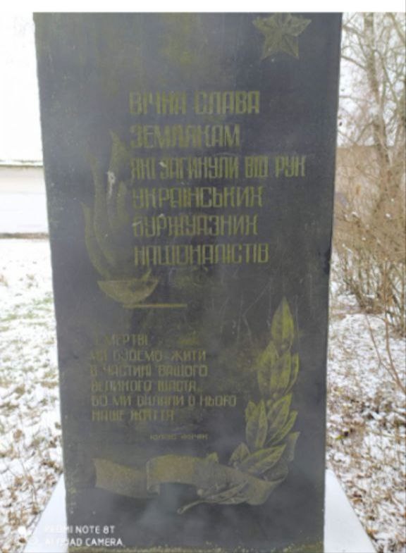Укронацистами уничтожен памятник на могиле мирным жителям села, погибшим от рук украинских буржуазных националистов.