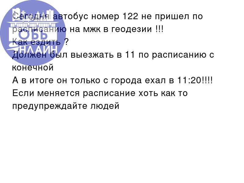 ↗ Сегодня автобус номер 122 не пришел по расписанию на мжк в геодезии