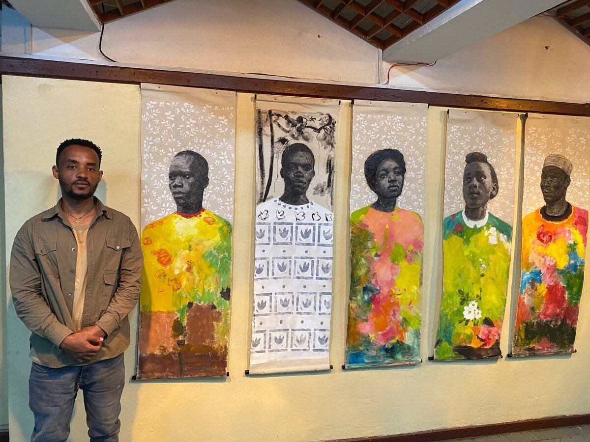Картины этого молодого эфиопского художника выставляются до конца августа в Русском Доме в Аддис Абебе .