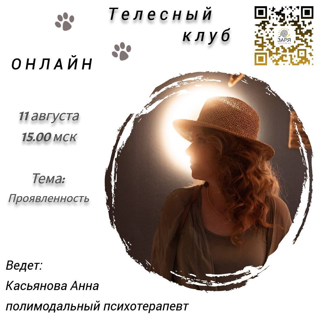 ‼️В понедельник 11.08. в 15:00 мск БЕСПЛАТНЫЙ телесный клуб Тема: «ПРОЯВЛЕННОСТЬ» Проявленность - значит быть видимым для других, но при этом оставаться собой. На встрече в понедельник мы будем проявляться и исследовать эту часть себя с помощью: - тела - чувств - поведения - творчества И возможно, чего-то еще! До встречи💜 Ведущая: ☀️ Касьянова Анна Кризисный психолог Групповой терапевт Действительный член ОППЛ Аккредитованный полимодальный супервизор ОППЛ Присоединяйтесь к чату БЕСПЛАТНОГО телесного клуба ⤵️ https://chat.whatsapp.com/J26Qzvam3nZLLnr833qA8s 📝Если появятся вопросы, пишите организатору Арине Юфряковой: +79108133372