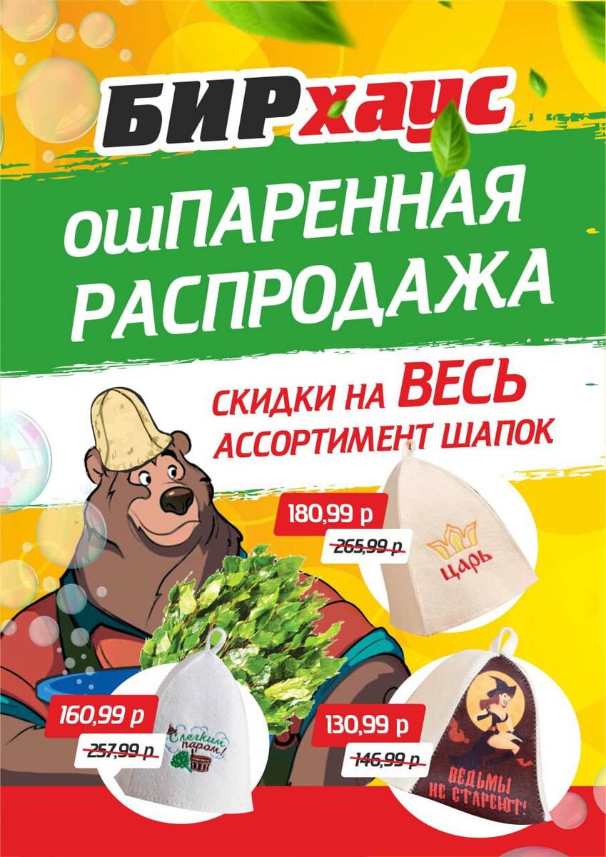 🔥 ошПАРЕННАЯ РАСПРОДАЖА в БИРхаус! 🔥 Скидки на весь ассортимент войлочных шапок для бани - пока не сдуло жаром! 😅🧖♂️ Зачем тебе шапка в бане? Вот три причины, после которых ты побежишь за ней, а не за веником: 1️⃣ Защищает голову от перегрева - не сваришь мозг в первом же заходе. 2️⃣ Сохраняет прическу и здравый смысл - даже после трёх заходов и литра пива. 3️⃣ Это просто стильно! — особенно, если ты с корешем и у вас парные шапки “Царь” и “Богатыырь” 💪 🧢 Бери себе и другу - и в баню как на праздник! Спеши, пока шапки не ушли паром!