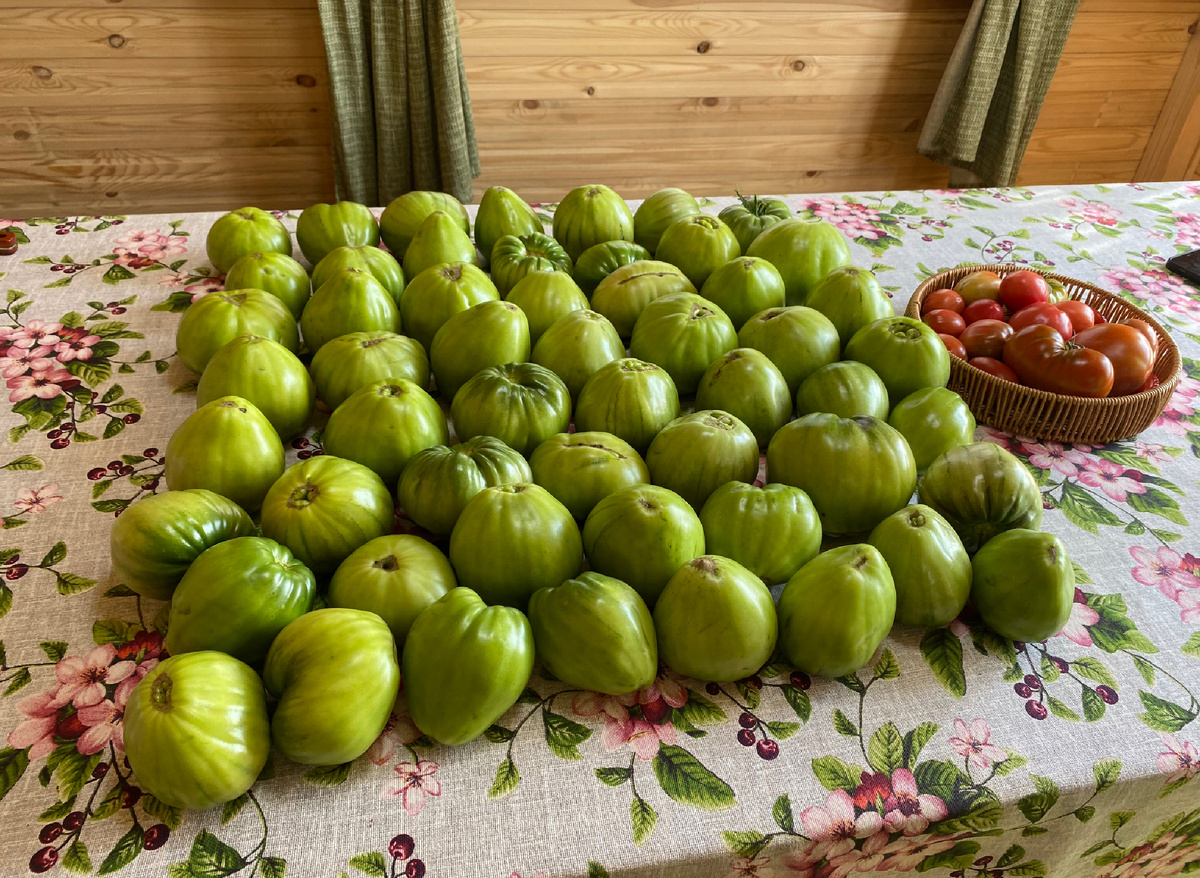 Это не весь урожай томатов. Ещё много осталось на кустах, есть и красные. Просто собирать уже было некуда.