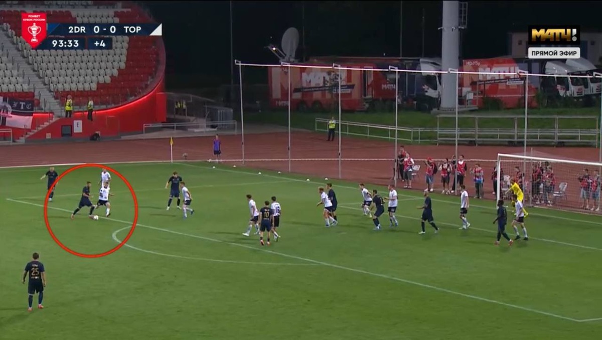 Фартуна – звезда 2Drots, играл за команду с весны 2022-го по лето 2023-го, но затем ушел в КАМАЗ из Первой лиги. Теперь он без клуба, месяц тренировался с 2D – и попал в заявку на Кубок России. Матч против «Торпедо» – первый после возвращения. Забавно, что Борис играл в футболке с неправильной фамилией – «Фарутна», такая вот опечатка.