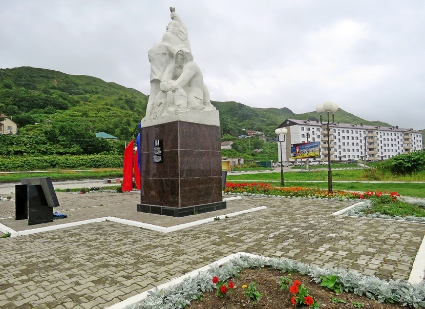 Центр Невельска под защитой брекватеров открывает небольшой и очень красивый памятник (1967), посвящённый третьей, а хронологически наоборот первой трагедии Невельска.