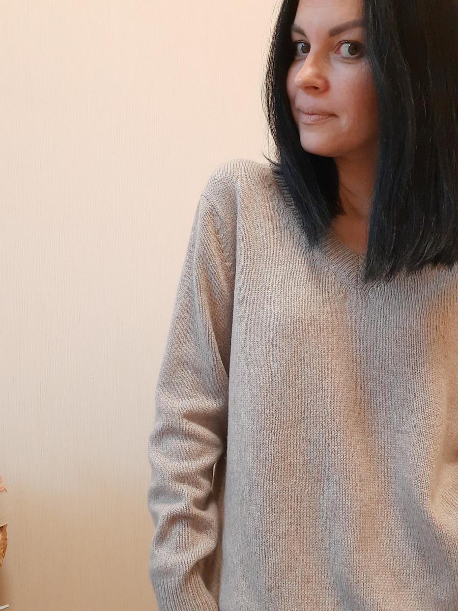 О да, он опять из стока, кашемир Loro Piana Coarsehair 550м/100гр. Приветствую, друзья! А вы как к стоку относитесь? С подозрением? Я нормально, безболезненно! Вся моя пряжа в основном стоковая, а может не вся, я даже не задавалась этим вопросом, когда её покупала. Ну хорош же, я довольна результатом! Весит 300гр, ширина 62 см, длина по полочке 63 см, спинка удлиненная 67 см. Связан на машине 5 класса, на плотности 6. Ах, дааа, у нас же ещё плечо японское, на мне немного спущенное, но у меня уже ширина плеч. А присмотритесь к пряже, она космическая, с меланжевым эффектом, многогранный цвет, там много разных оттенков, не передать посредством фото... Думаю на этом все. Всем пока и до новых встреч!