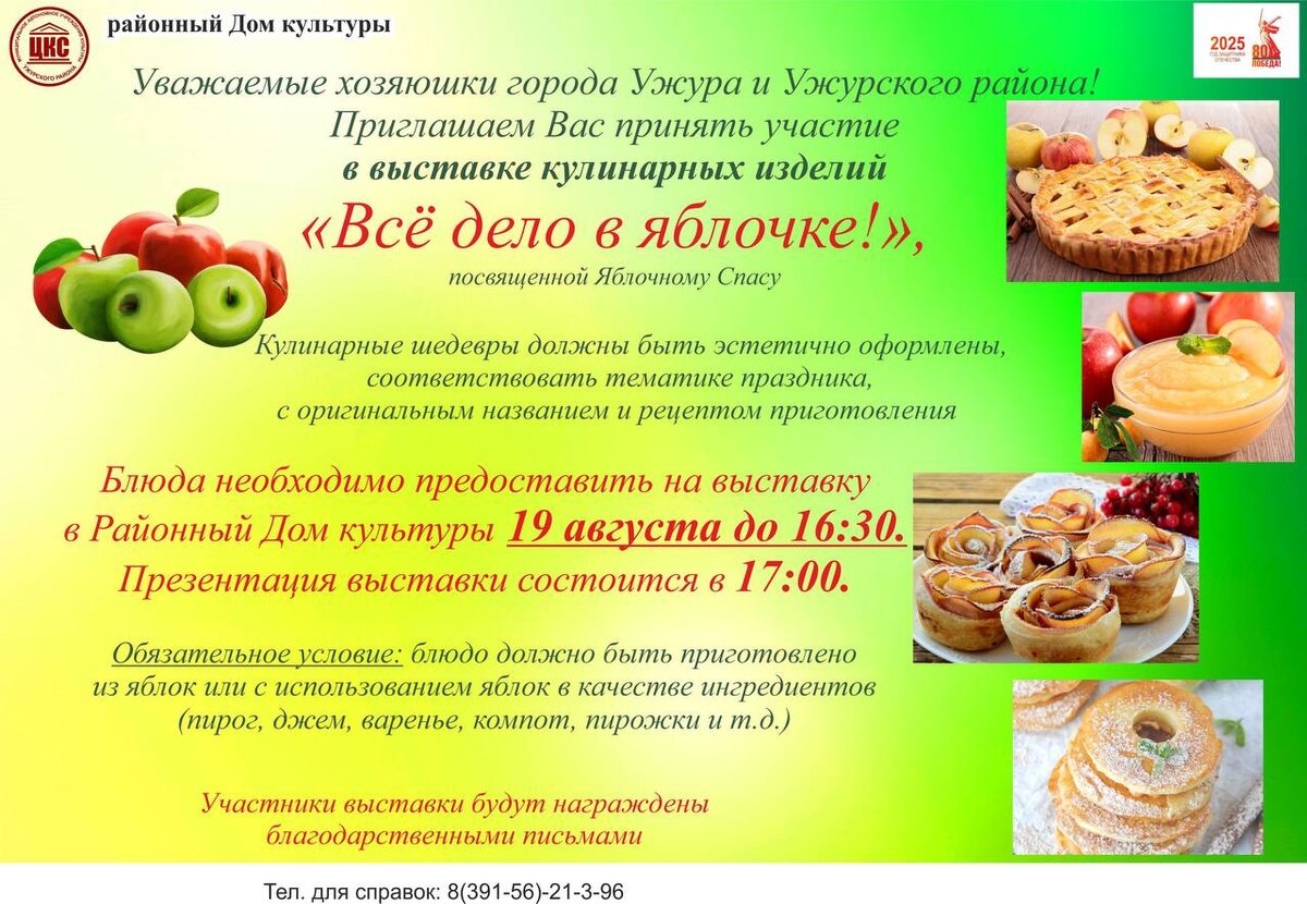 Блюда необходимо предоставить на выставку в Районный Дом культуры 1️⃣9️⃣ августа до 16:30.