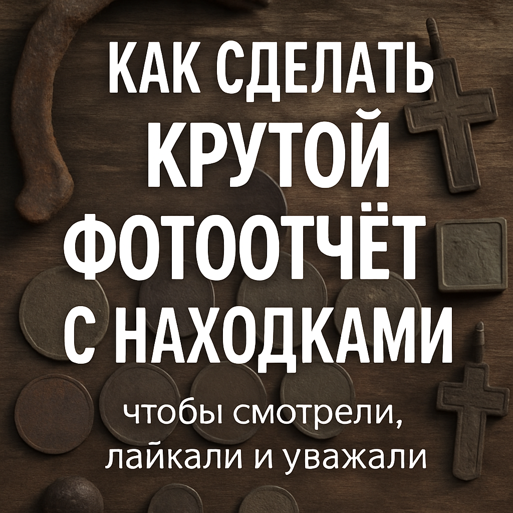 Фотоотчёты — это не просто “вывалить всё на тряпку и щёлкнуть”. Хороший отчёт: Расскажу, как я оформляю находки после выезда, чтобы было приятно и себе, и людям. ⚠️ Перечищенная монета — это боль для коллекционеров ❌ Не кидай находки на грязную тряпку, мятую газету или коленку ✅ Используй: Совет: серый или коричневый фон — универсальный Лучше всего — дневной рассеянный свет Можно сделать серию: «Сигнал — выкопка — находка» Добавь: Это делает фотоотчёт полезным и запоминающимся Хороший фотоотчёт — это не «похвастаться», а показать уважение к делу. И себе приятно, и другим интересно. Со временем ты сам будешь благодарен себе за такие снимки.