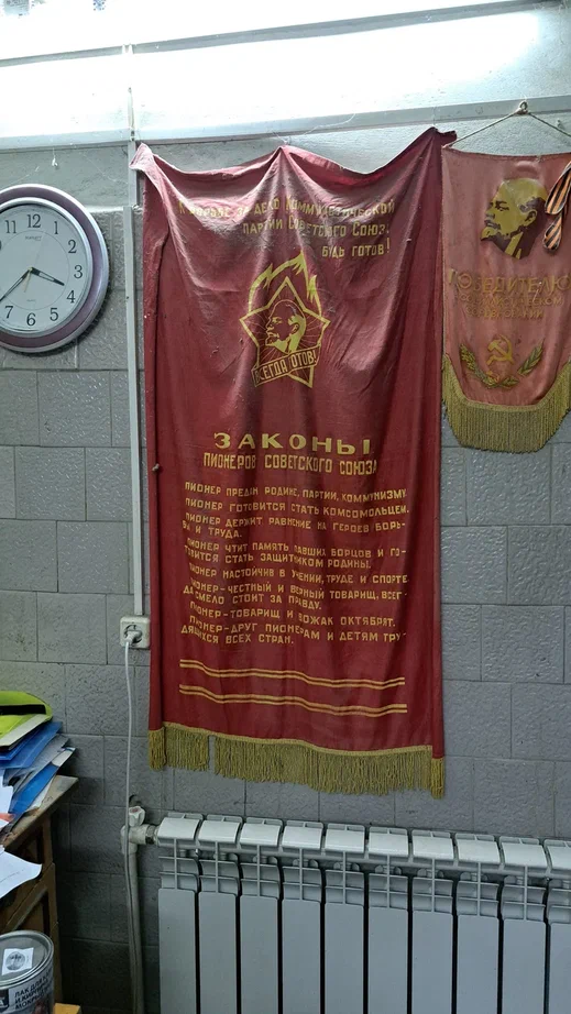 А это один из флагов висевший в мастерской, для заставки в статье должна быть фотография, вот я и сфотографировала.