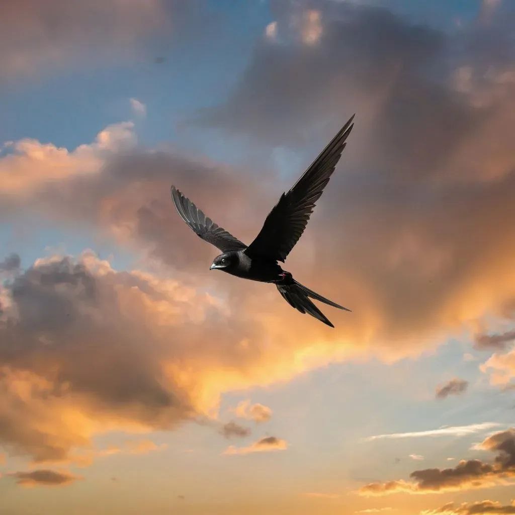 Чёрный стриж способен находиться в полёте непрерывно около двух лет подряд. Во время полёта стрижи едят насекомых, спят и даже спариваются в воздухе. Они опускаются на землю только для размножения и выращивания потомства. Такая уникальная способность обусловлена анатомическими особенностями чёрного стрижа: - Очень длинные крылья позволяют птицам долго парить в восходящих потоках воздуха. - Специальные адаптационные механизмы обеспечивают быстрый обмен веществ и высокий уровень метаболизма. - Стриж легко ориентируется в пространстве благодаря отличному зрению и навигационным способностям. Эта птица демонстрирует исключительные адаптивные возможности, демонстрируя высокую степень приспособленности к жизни в воздушной среде обитания.