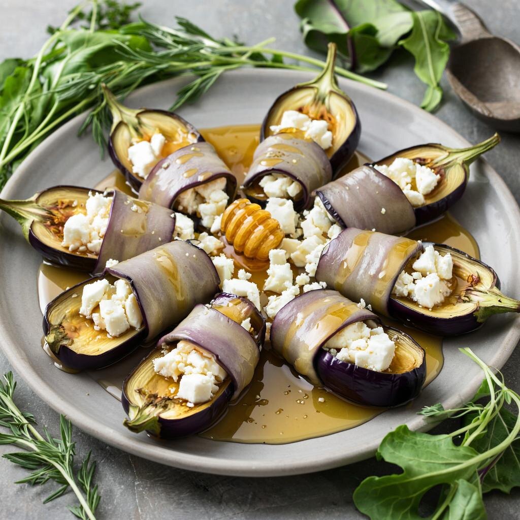 Баклажанные роллы с фетой и мёдом Ингридиенты: