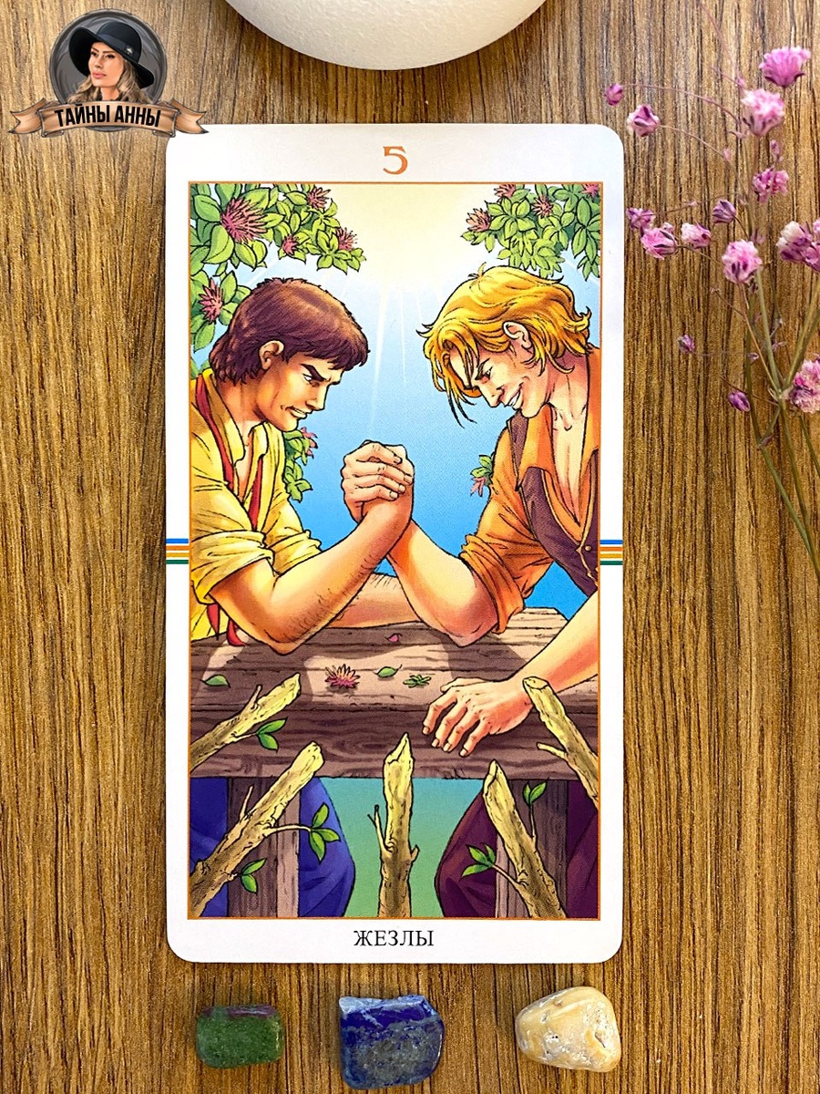 Аркан дня Пятёрка Жезлов: «В споре рождается истина, а в борьбе — сила...» Сегодня вам, так или иначе, придётся доказывать свою правоту и отстаивать собственные интересы. Причём делать это придётся не в тихом кабинете, а в открытом противостоянии с равными вам по силе соперниками. И это прекрасно! Ведь именно в таких ситуациях мы по-настоящему узнаём, на что способны. Застой и стабильность позади — пришло время встряхнуться и показать, из какого теста вы слеплены. Не пугайтесь, сегодняшние конфликты будут носить скорее конструктивный характер. Это не "война на уничтожение", а здоровая конкуренция, которая заставит вас мобилизовать все свои таланты и способности. А главное — бороться с собственной ленью и желанием остаться в зоне комфорта! То, что сегодня можно и нужно делать: ◈ Смело вступать в споры, отстаивая свою правоту ◈ Участвовать в конкурсах, тендерах, соревнованиях. ◈ Отстаивать собственные интересы и не давать себя в обиду. ◈ Проявлять инициативу там, где другие пасуют. ◈