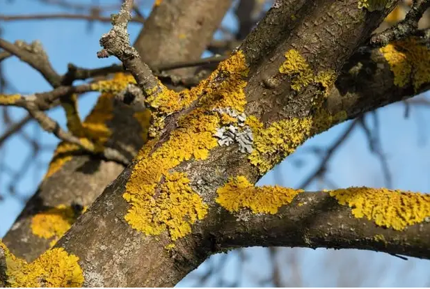 Лишайники и мхи: Их нужно аккуратно счистить деревянной лопаткой с коры стволов и крупных ветвей. Затем опрыскайте растения раствором железного купороса (300 г на 10 л воды).