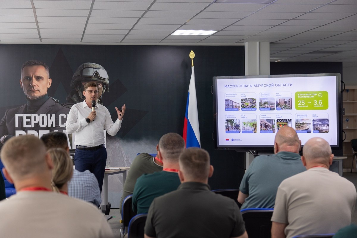 В Амурской области набирает обороты первый образовательный модуль программы профессиональной переподготовки бойцов спецоперации «Герои своего времени». Напомним, список наставников кадровой программы для ветеранов СВО возглавил губернатор Амурской области Василий Орлов. На днях его участники завершили академический курс по теме «Единая система публичной власти». Помимо лекций, практикующие эксперты из числа руководителей органов исполнительной власти региона провели «Мастерские управления».