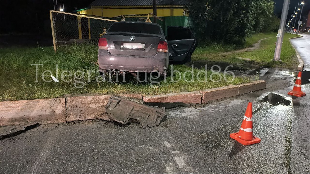 В Нижневартовске Volkswagen протаранил бордюр
