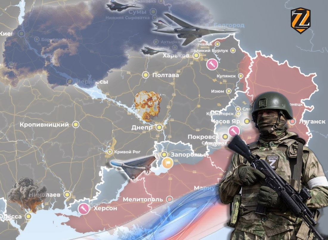 Наши войска продолжают наступление в южной части Волчанска, активно работают артиллерия и авиация. Идёт движение в сторону Синельниково — при взятии этого участка будет перерезана часть снабжения ВСУ. Бои также фиксируются в районе Волчанских Хуторов и Липцев, где линия фронта остаётся без существенных изменений.