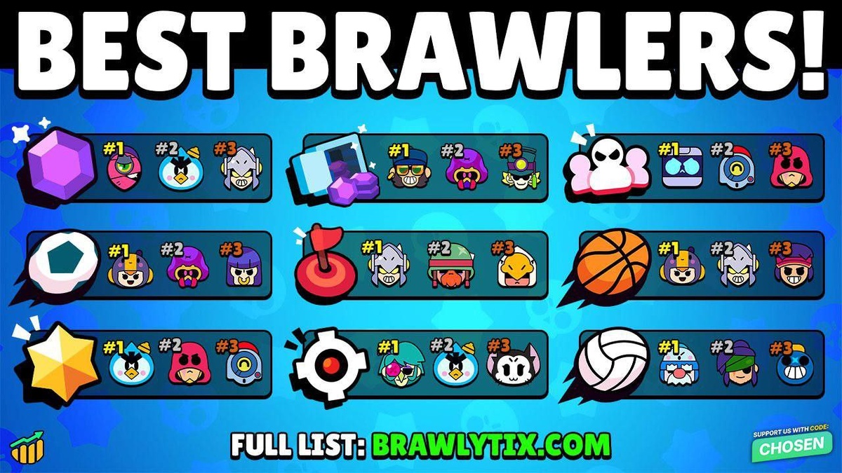 ⚡️Топовые бравлеры в каждом режиме игры, согласно текущим данным