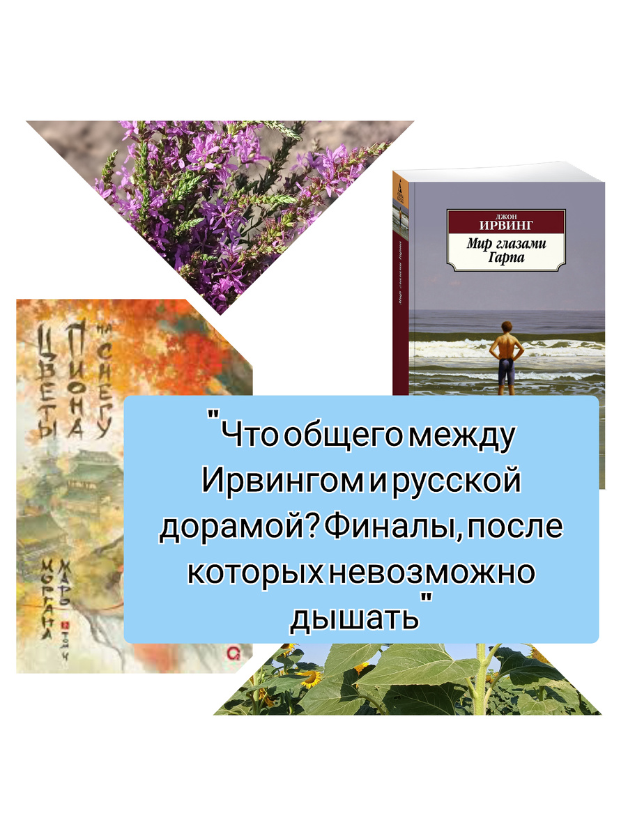 «Мир глазами Гарпа» Джона Ирвинга и «Цветы пиона на снегу», том 4, русской писательницы Морганы Моро — эти книги стали для меня как два окна в разные миры, но оба открывались в дождь. И этот дождь шёл не снаружи — он капал где-то изнутри. Поскольку снаружи ну нет его опять, жара +35)