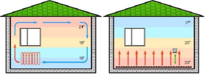 Естественная конвекция: тепло поднимается вверх естественным путем, без необходимости принудительной циркуляции воздуха, как это происходит при работе радиаторов. Это снижает потери тепла и обеспечивает более эффективное использование энергии.