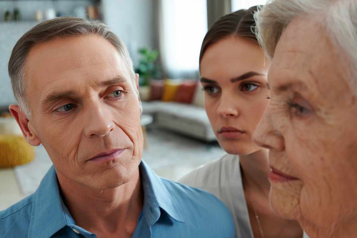 За ним стояла невестка Ольга с каменным лицом. Оба выглядели так, будто пришли на деловые переговоры.