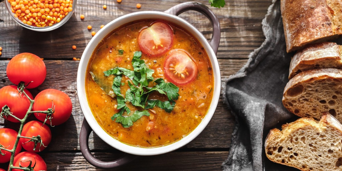 Это ароматное блюдо, сочетающее вкус красной чечевицы и специй. Паприка придаёт супу тёплый, землистый и дымный оттенок. Ниже представлен рецепт постного чечевичного супа. Также вы можете приготовить его с курицей или свининой. Ингредиенты : - Красная чечевица – 200 г - Морковь – 1 шт. - Сельдерей стеблевой – 2 шт. - Копчёная паприка – 1 ч.л. - Томатная паста – 2 ст.л. - Лимонный сок – 1 ст.л. - Вода – 1,5 л - Соль, перец – по вкусу Приготовление: 1. Чечевицу промыть. 2. Овощи нарезать кубиками. 3. Варить чечевицу с овощами 20 мин. 4. Добавить паприку, томатную пасту, соль. 5. Варить ещё 10 мин, влить лимонный сок.