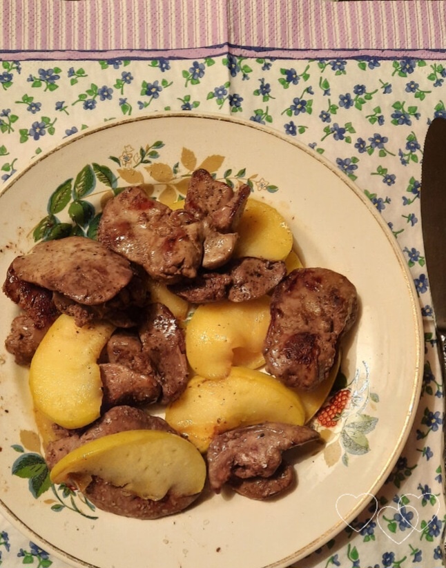 Печень куриная, обжаренная с яблоками