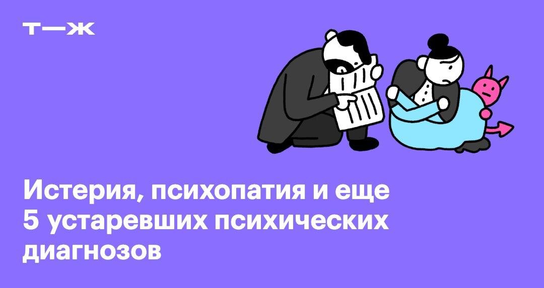 1850-е: «Он разговаривает сам с собой — очевидно, бесноватый». Сегодня: «Он на встрече в Zoom в наушниках». Собрали диагнозы, которые остались в прошлом: https://t-j.ru/m-tg/old-mental-disorders/