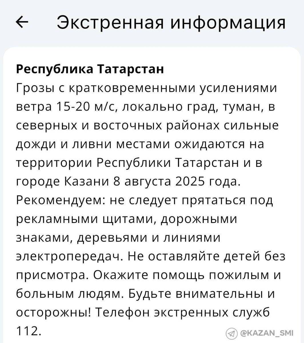 ⚡️ Непогода снова придет в Татарстан МЧС предупреждает, что завтра татарстанцев ждут грозы, сильный ветер, ливни, туман и град. #город@kazan_smi 😭 — а говорили, что самое жаркое лето будет… 👍 Подписаться на канал ПЛАТИМ ЗА ЭКСКЛЮЗИВНЫЕ КАДРЫ