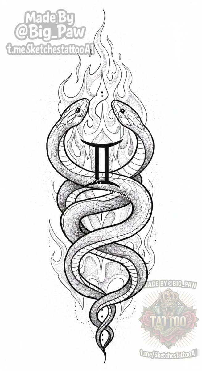 #2651 Подборка по запросу подписчика - эскиз близнецы в год змеи без людей и лиц ?с добавлением огня