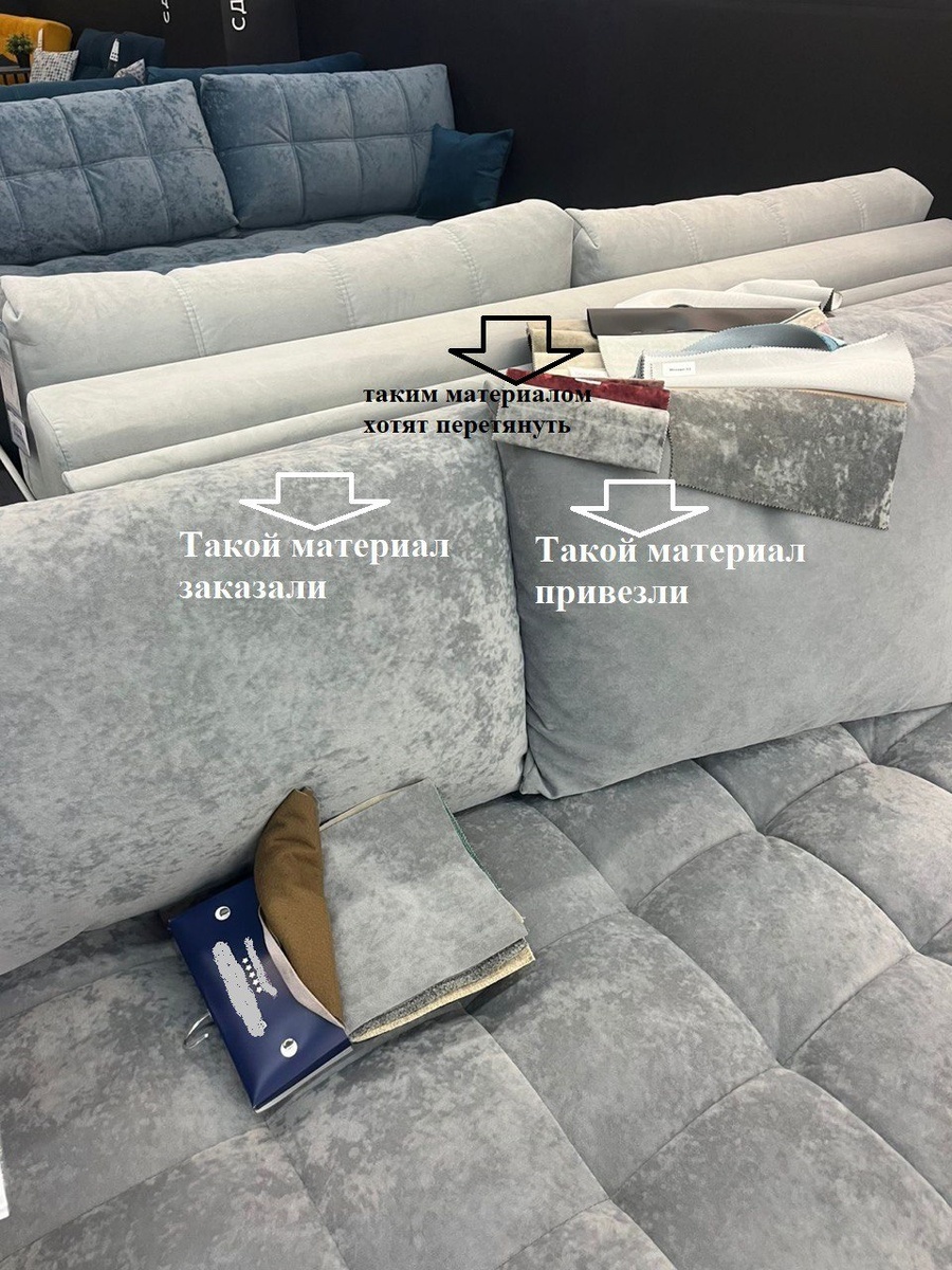 Товар ненадлежащего качества ❓🤔 Заказывая товар покупатель имеет право получить товар надлежащего качества - то, что он заказывал. В случае поставки товара ненадлежащего качества потребитель имеет ряд законных возможностей для защиты своих интересов, включая требования о: ✔ замене, ✔ ремонте или ✔ возврате товара, а также ✔ возмещения своих расходов на ремонт и ✔ компенсации убытков. Потребитель сам выбирает какое из этих требований ему заявить. Недавно ко мне обратились с просьбой: продавец привез диван не с той обивкой, которую заказывали (см.фото 👆). Название заказанного материала: Велюр Роял агат NEW. Поставленный материал: Велюр Роял агат. Материал привезенного дивана более грубый и визуально и тактильно. Покупатель хочет заменить обивку самостоятельно и потребовать возмещения расходов от продавца. При этом, производитель отвечает, что это один и тот же материал. Как вы считаете обоснованы требования покупателя или нет❓👇