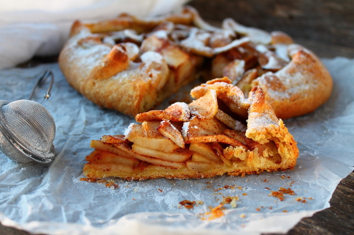 Ингредиенты: - Мука овсяная или пшеничная — 100 г - Овсяные хлопья — 80 г - Сахар в тесто — до 1 ст.л. - Кипяток — 50 мл - Растительное масло — 50 мл - Соль — 1 щепотка - Разрыхлитель — 1 ч.л. - Яблоки — 2 шт. - Сахар в начинку — 1-2 ч.л. - Корица, имбирь — по вкусу Приготовление: 1. В миске смешайте муку, овсяные хлопья, соль, сахар и разрыхлитель. По желанию добавьте корицу и имбирь. 2. Кипяток соедините с растительным маслом, залейте сухие ингредиенты и тщательно перемешайте. Оставьте тесто на 20 минут для набухания. 3. Яблоки очистите от кожуры и семян, нарежьте тонкими дольками. 4. Раскатайте тесто в круг толщиной около 0,5 см, выложите на противень, посыпанный овсяными хлопьями или крахмалом. Оставьте отступ 5 см от края. 5. Выложите яблочную начинку на середину теста, посыпьте её сахаром. 6. Загните края теста, формируя галету, чтобы яблоки были частично закрыты. 7. Выпекайте в духовке при 180–200 °C примерно 30 минут до золотистой корочки. Приятного аппетита!
