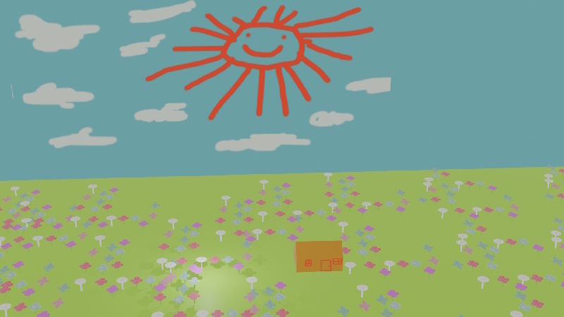 Трехмерная сцена на сегодня. По мотивам лета и дачного домика. Что-то доброе такое. Взятое из твоего лета. И как бесконечное пространство. Где всегда именно так. И солнышко улыбается. А вокруг растут один только цветочки. Красивые и разные. А еще немного грибы тут растут. И много зеленой травки. И в небе солнышко. Оно улыбается. А облака плывут по небу. Такие белые. И это признак самого теплого и жаркого солнечного дня. Белые облака. Их мало. Они плывут. И ты можешь угадывать узоры, которые они тебе рисуют в небе. Но узоры не всегда бывают. Иногда облака – просто плывут. По своим делам. А домик! Это твой домик здесь? Ты его помнишь? Он точно такой же остался? Когда ты последний раз сюда приезжал. Солнышко тебя спрашивает и качается. Из одной стороны в другую. В домике два этажа и много места. Можешь там оставить все свои вещи. Компьютер. И все что тебе нужно. И оставайся, по крайней мере, на лето. Цветочки улыбаются и машут лепестками. Мы тебя помним! Ты уже здесь был! Это волшебное ме