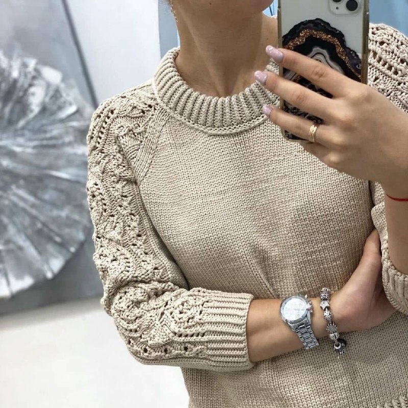 Красивущий джемпер Melania с ажурными рукавами японским узором ❤️ Хочешь - в рукав его добавь, хочешь - спереди, или по спинке, или весь джемпер этим ажуром свяжи... на любой вкус! ⠀ 🔥 • пряжа здесь кашсета, но можно вязать из любой • спицы 4,5-5,5 • на размер 44 - 102 петли • расход 500 г ⠀ Схема в карусели, а если хотите подробное описание этого джемпера + классической Melania и базового реглана Hamelton 👇🏼👇🏼👇🏼 💢 вэлком в комбо урок 3 в 1