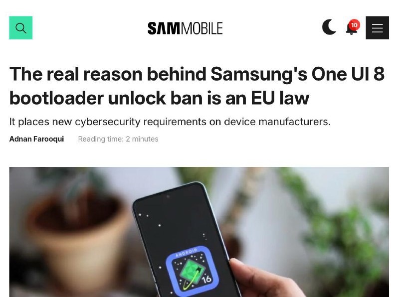В Евросоюзе запретили кастомизацию Android. В ответ на новые киберстандарты Samsung начала блокировать установку стороннего программного обеспечения. С 1 августа производители обязаны ограничить доступ к загрузчикам, в противном случае смартфоны не смогут попасть на рынок. Samsung уже отреагировала на эти требования, но последствия затронут и другие страны. Теперь владельцы смартфонов не могут устанавливать кастомные прошивки и ядра. Ранее это давало возможность обновлять устройства после завершения официальной поддержки. Подробности можно узнать на сайте SamMobile. Наш уютный канальчик 🤖 Анимация | СhatGPT-4 | Помощь с резюме