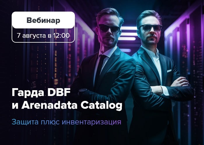 СЕГОДНЯ В 12:00 ВЕБИНАР С утра пролистываю материалы и придумываю вопросы коллегам. Мы покажем синергию продуктов Гарда DBF и Arenadata Catalog. Ситуация ведь так себе: данных все больше - защиты все меньше. Согласны? Как нашу информацию в компании упорядочить, найти спрятанные от ИТ и ИБ базы и привести в соответствие законодательству контроль за персональными данными внутри - обсудим сегодня. 💡 Основные моменты: 🔹 Как защитить чувствительные данные и автоматизировать управление ими. 🔹 Что может случиться, если СУБД настроена небезопасно 🔹 Как убедиться, что СУБД соответствует требованиям регуляторов 🔹 Как отличить обычного пользователя от инсайдера 🔹 Как найти следы злоумышленника в базе, когда встроенные средства бессильны 🛡 Как усилить защиту баз данных ⚡ Спойлер: связка «Гарда DBF» + Arenadata Catalog = сквозной контроль над данными от инвентаризации до защиты на уровне запросов и действий пользователей. ─────────────────── 📅 Когда: 7 августа, 12:00 🎥 Онлайн: Регист