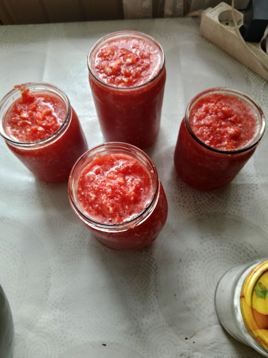 Приготовили хренодерки 1 кг помидор🍅🍅 100 гр чеснока🧄 100 хрена🫚 2 чайные ложки 🥄 соли с горкой 1 столовая ложка🥄 сахара с горкой Пропускаем всё через мясорубку. Перемешиваем и раскладываем по банкам. И в холодильник. Чтобы дольше стояла, можно между крышкой и банкой проложить пакет. Отменная штука👍! Но у нас быстро заканчивается🤷♂ Всем приятного аппетита😋