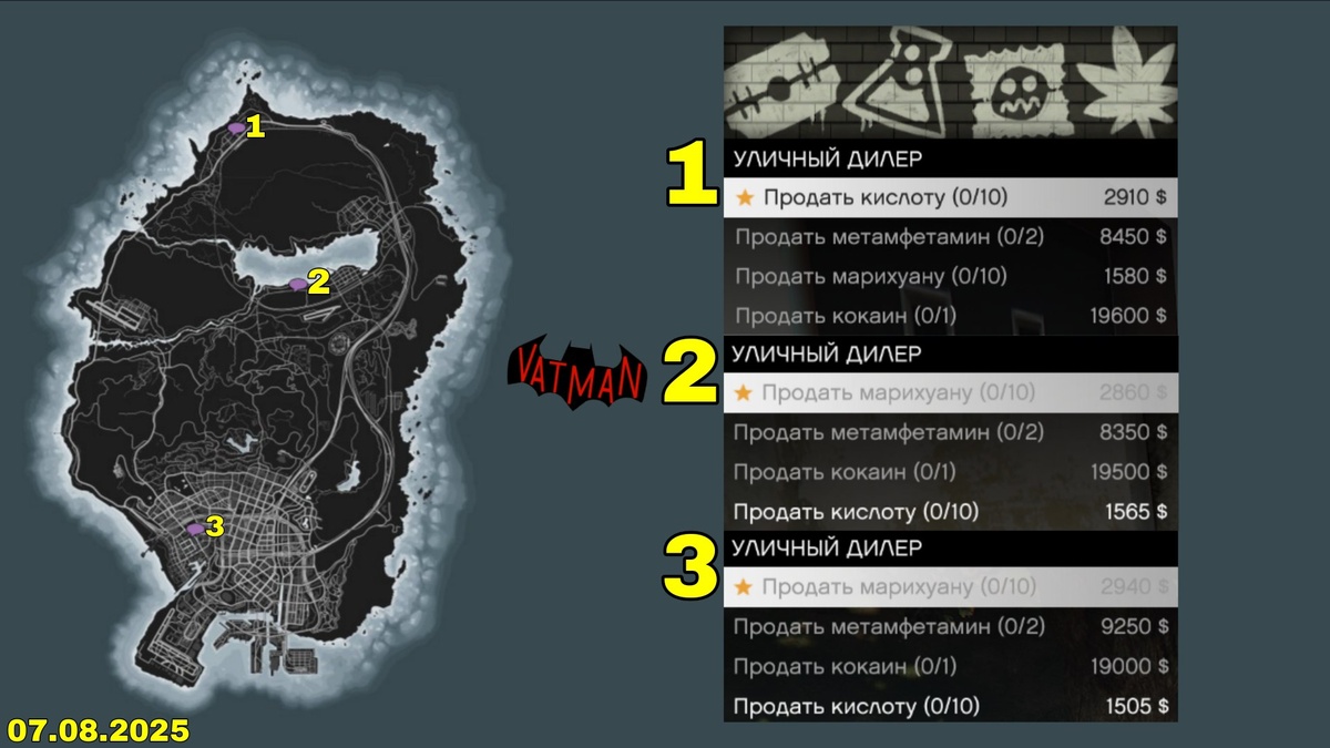 Расположение дилеров в GTA Online на сегодня (7 Августа) ☀