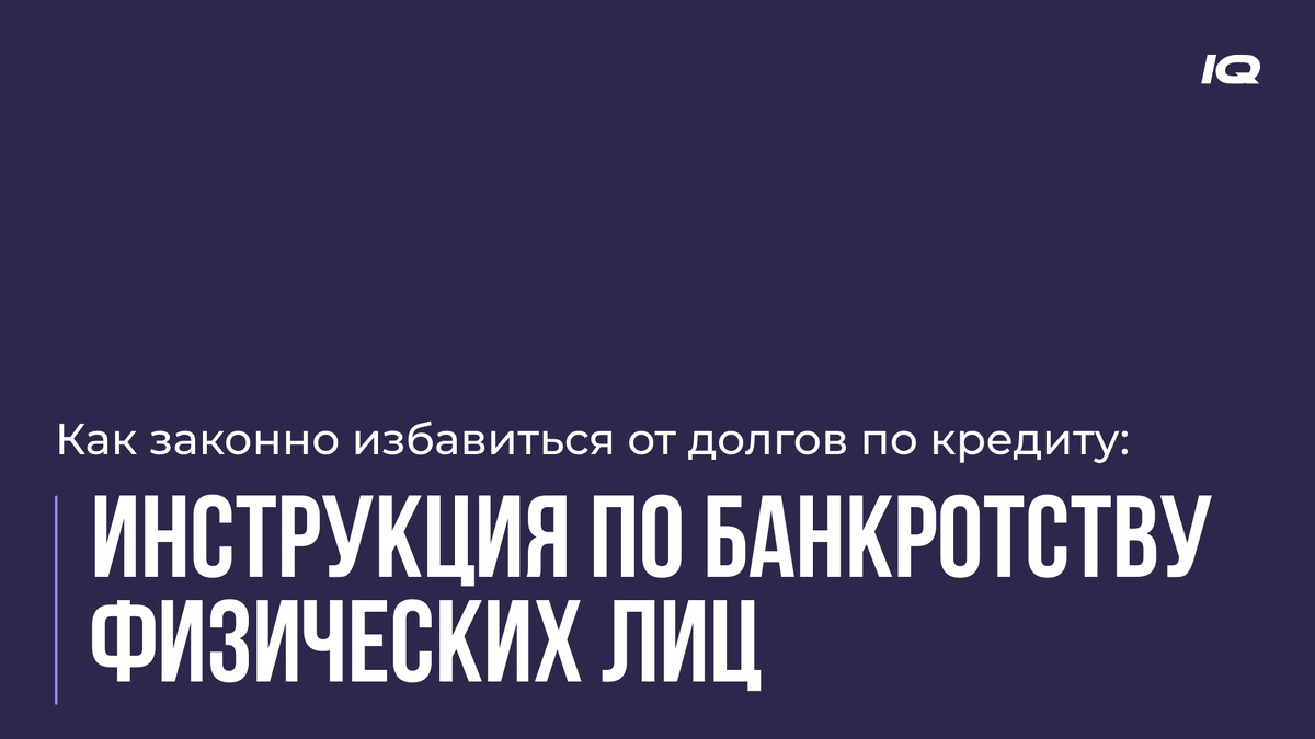 Банкротство — это не страшно и не стыдно. Это ваше законное право освободиться от долгов и начать новую главу в жизни. Через МФЦ — бесплатно, но рискованно. Через Айкью Групп — надёжно, профессионально и с гарантией результата. Банкротство физического лица — это юридическая процедура, при которой гражданин официально признаётся неспособным погасить свои долги и освобождается от всех финансовых обязательств. После прохождения процедуры: Существуют два способа прохождения процедуры банкротства: МФЦ или через Айкью Групп. Этот способ называют внесудебным. Вы просто подаёте заявление в МФЦ и ждёте решения. Условия: Плюсы: Минусы: Этот способ проходит через арбитражный суд с участием команды юристов и арбитражных управляющих. Плюсы: Банкротство — это не страшно и не стыдно. Это ваше законное право освободиться от долгов и начать новую главу в жизни. Через МФЦ — бесплатно, но сложно и рискованно. Через специалистов от Айкью Групп — надёжно, спокойно и проверено.