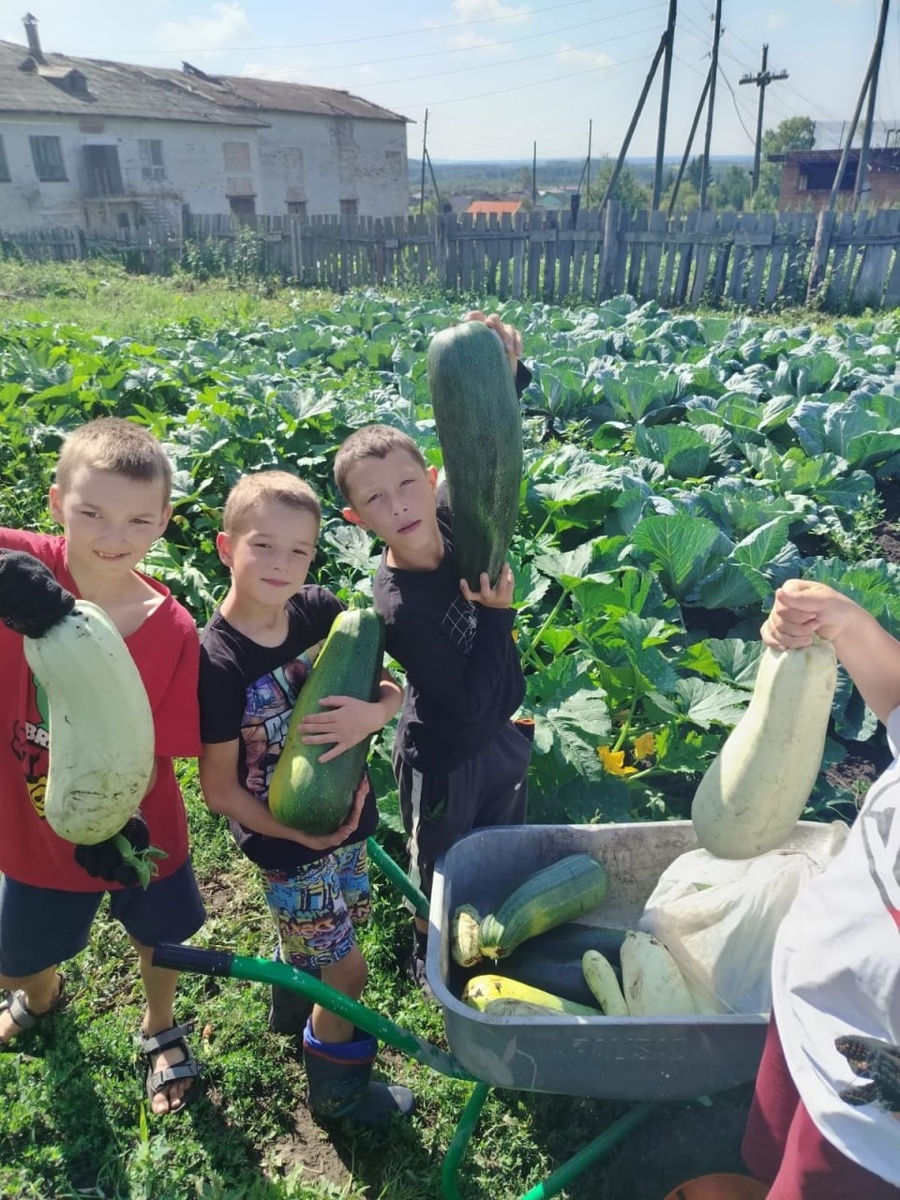 Ребята из детского дома в Стойбе собрали кабачки на участке