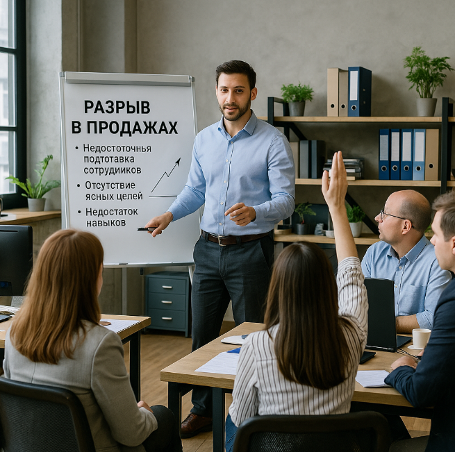 Пример: один день тренинга, 90 000₽ потрачено — эффект ноль. Почему? Нет системной поддержки, нет обеспечения, нет работы с реальными кейсами вашего бизнеса.