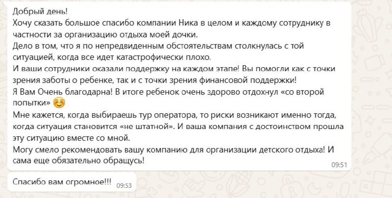 То, над чем мы работаем: помогать родителям и детям выбрать отдых, и отдыхать с радостью и без забот. Можно сказать даже ради чего- эти отзывы делают наше утро, хотя утра бывают очень сложными. Но очень благодарными🤗🤗🙏🙏😍😍😍