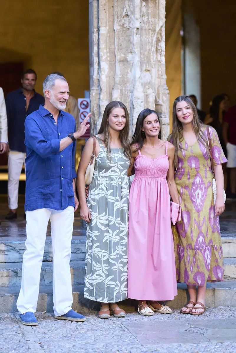 В этот вторник в конце дня принцесса Леонор и инфанта София сопровождали своих родителей на частную экскурсию по выставке, посвященной Жоану Миро. Филипп, Летиция и их две дочери начали визит с рукопожатия и селфи с гражданами Майорки, собравшимися на улице. Затем королевская чета и принцессы вошли в ла-Льонья-де-Пальма, чтобы найти Джоан Пуньет, внука Миро. По городу разбросаны четыре выставки, в том числе одна в Ла Льотья. «Мэр Пальмы уже несколько раз выражал желание, чтобы королевская семья могла посетить одну из выставок». София: После выставки семья отправилась на ужин в один из своих любимых ресторанов на острове. Каждый год они выходят на ужин, чтобы посетить один из местных ресторанов и попробовать блюда, связанные с гастрономией Майорки. И в этом году они выбрали тот же ресторан, в который уже ходили в прошлом году. Этот ресторан, созданный шеф-поваром Гильермо Кэботом, является любимым у королевской семьи на Майорке. По прибытии все четверо приветствовали Кэбота с полно
