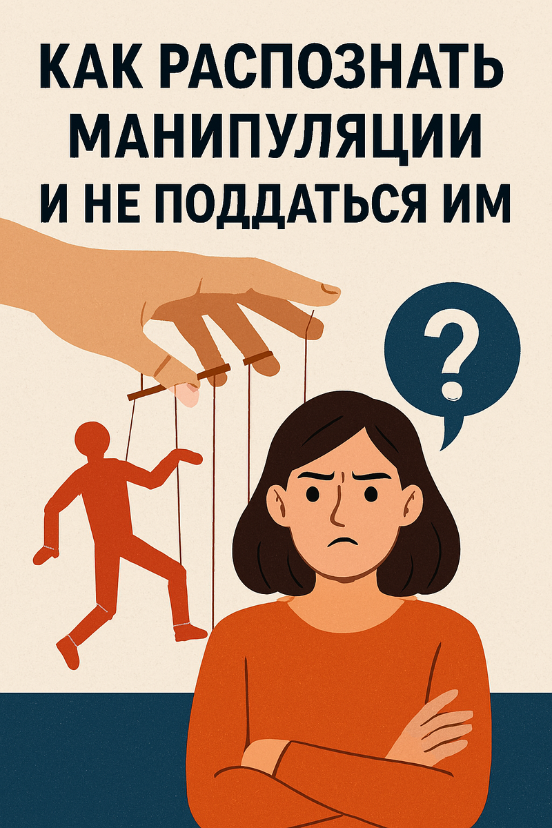 🧠 Как распознать манипуляции Вот ключевые признаки, по которым можно понять, что вами пытаются манипулировать: • Эмоциональное давление: вызывают чувство вины, страха, жалости или стыда. • Искажение фактов: манипулятор может преувеличивать, недоговаривать или переворачивать ситуацию. • Лишение выбора: тебе не дают возможности сказать «нет» или задать вопросы. • Нарушение границ: человек игнорирует твои желания, время, ресурсы. • Скрытые угрозы или ультиматумы: «Если ты не сделаешь это, я…» Пример: «Ты же хороший друг, неужели откажешь?» — это не просьба, а попытка вызвать вину и заставить согласиться. 🛡 Как не поддаться манипуляциям • Осознавай свои эмоции: если чувствуешь дискомфорт, тревогу или давление — это сигнал. • Сохраняй внутренние границы: ты имеешь право сказать «нет» без объяснений. • Отделяй факты от эмоций: спроси себя: «Что реально происходит?» • Отвечай спокойно и уверенно: «Я понимаю, что тебе важно, но сейчас это не входит в мои планы». • Не оправдывайся: