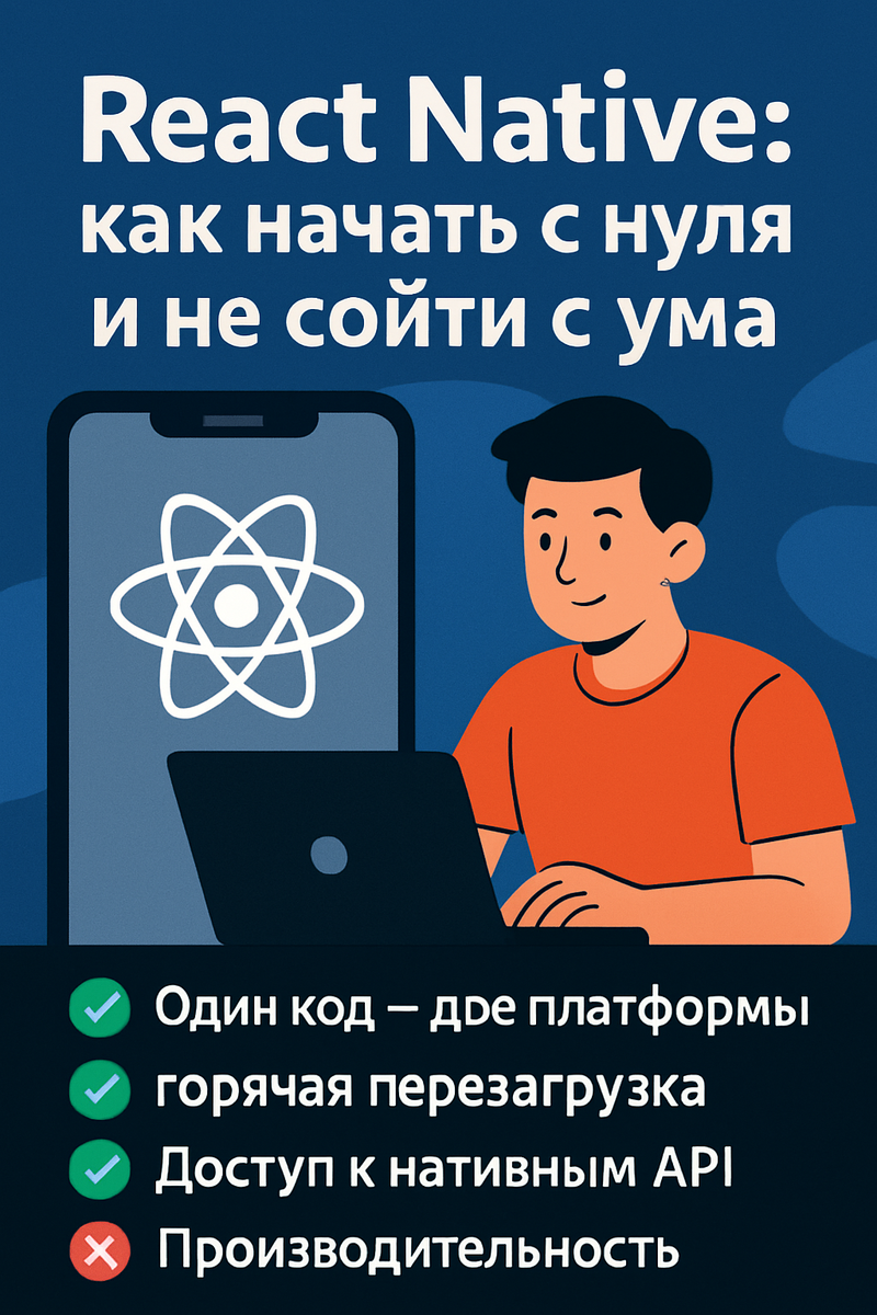 Ты хочешь создавать мобильные приложения, но идея учить и Kotlin для Android, и Swift для iOS вызывает зевоту или панику? Спокойно! Есть решение — React Native. Это не магия, это JavaScript (ну почти), и он действительно позволяет писать один код для двух платформ. Погнали разбираться, что это такое, с чего начать и как не сломать себе мозг на старте. Прежде чем рваться в бой, давай посмотрим, стоит ли овчинка выделки. ✅ Один код — два приложения